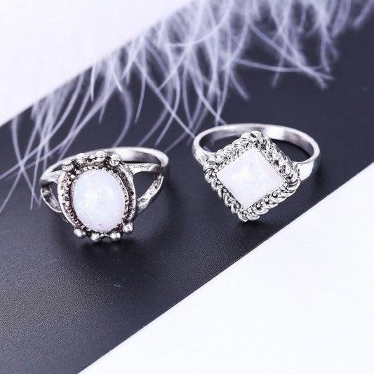 Women Bohemian Fashion Silver Color Natural Stone Moon White Opal Ring Jewelry