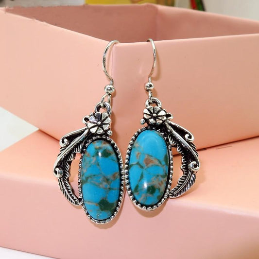 Vintage Flower Leave Stone Dangle Earrings Jewelry