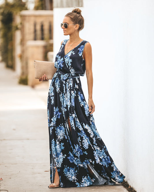 Bohemian Print Beach Split-side Sleeveless Chiffon Dress