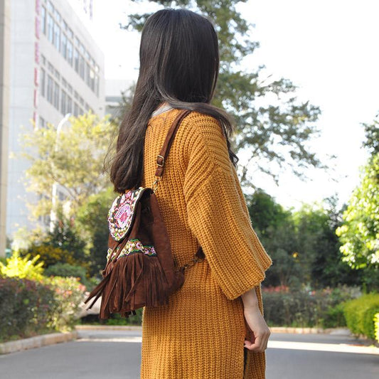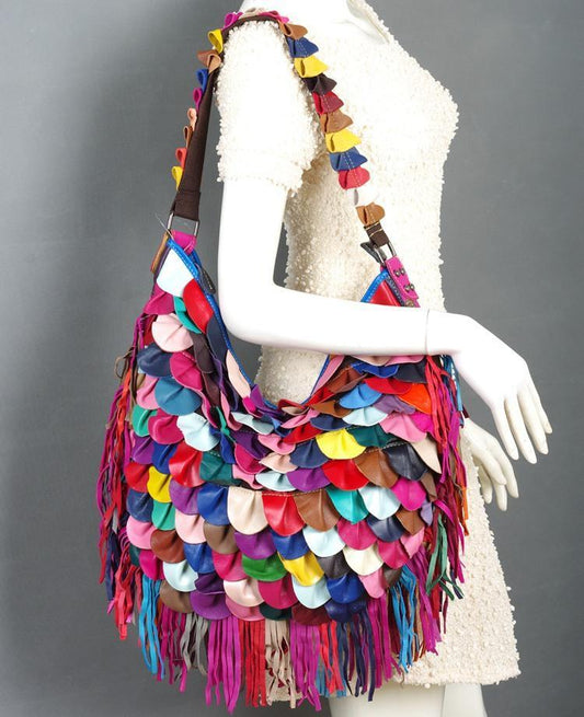 Pure Sheepskin Bohemian Soft Color and Black Tassel One Shoulder Crossbody Bag