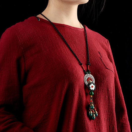 Retro Wild National Style Shell Flower Dried Bluestone Necklace