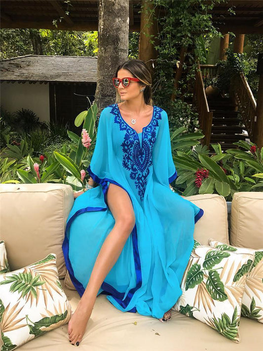 Loose Plus Size Chiffon Embroidered Beach Swimwear Cover-up