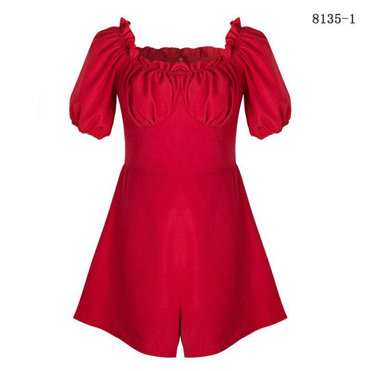 Bohemian Beach Lantern Sleeves Solid Color Jumpsuit