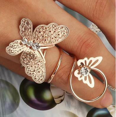 Fashion 4pcs Set Gold Color Plating Simple Boho Rings Women Zircon Bohemian Engagement Rings