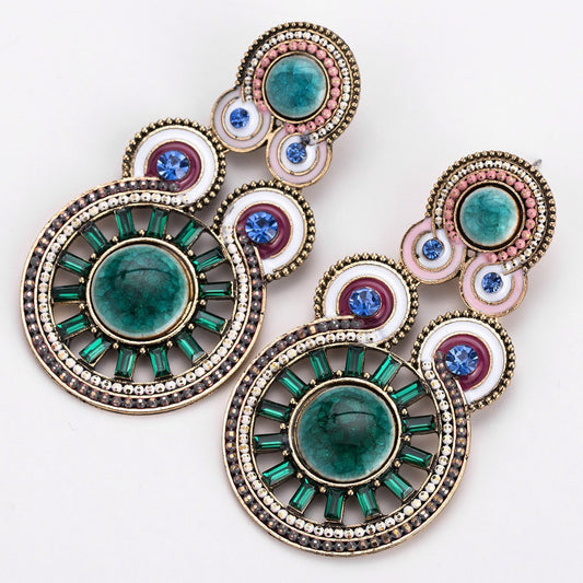 Exaggerated Diamonds Ripples Ethnic Style Bohemian Style Earrings