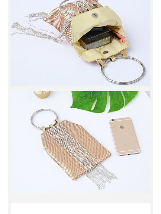 Portable Aluminum Sheets Tassels Evening Bags Banquets Sequins Clutches