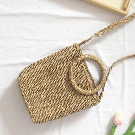 Vintage Ring Paper Rope Handbag Square Straw Bag Beach Bag