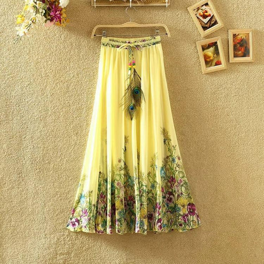 Print Floral Boho Style Long Skirt Huge Hem Chiffon Bohemian Skirt - 1