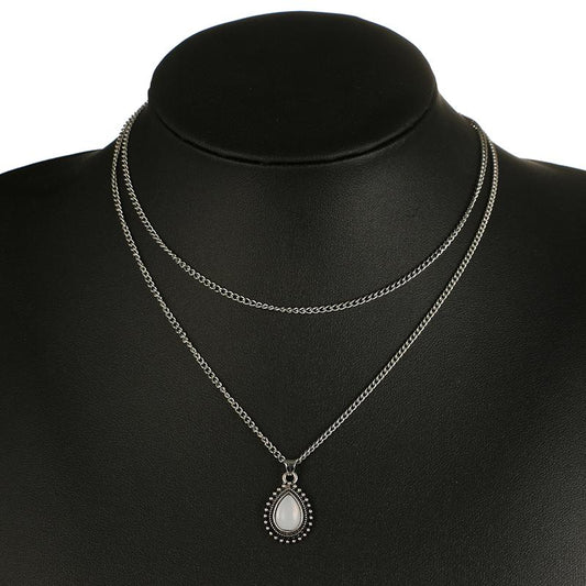 Bohemian Water Drop Crystal Charm Chokers Necklaces Women Silver Alloy Chain Jewelry