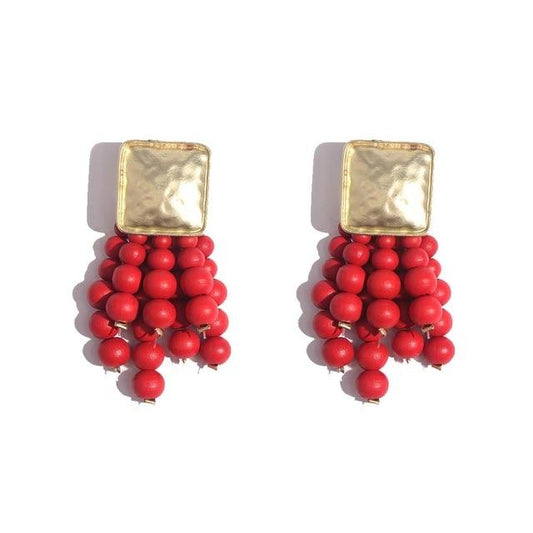 Long Beads Tassel Square Metal Handmade Charm Big Drop Earring