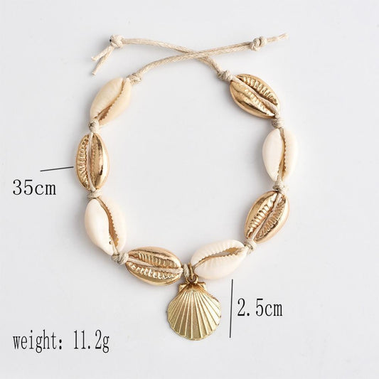 Vintage Antique Gold Color Shell Sequins Geometric Bohemian Anklet Foot Jewelry