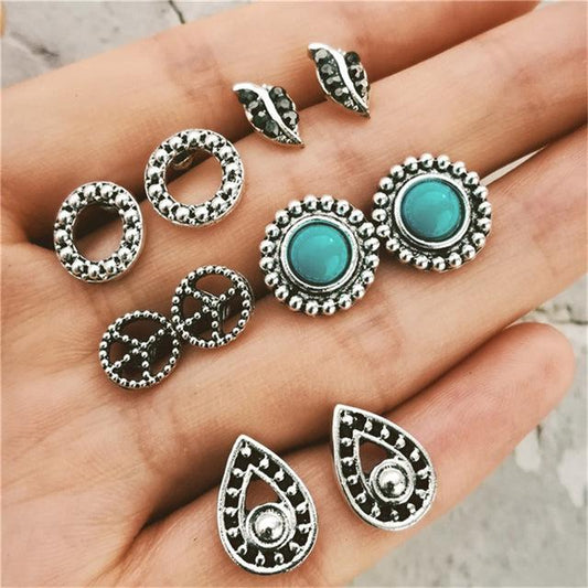 Bohemian Starfish Wave Turtle Shell Stud Earrings Set For Women Vintage Rudder Heart Round Earring Statement Jewelry