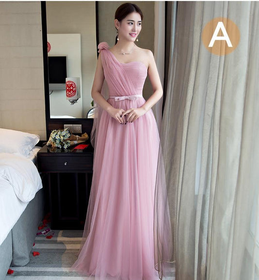 Winter New Bean Paste Color Shoulders Slim Fit Bridesmaid Dress