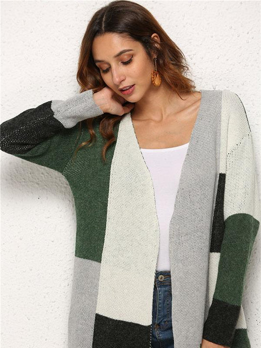Color Matching Knitting Long Sleeves Cardigans Tops