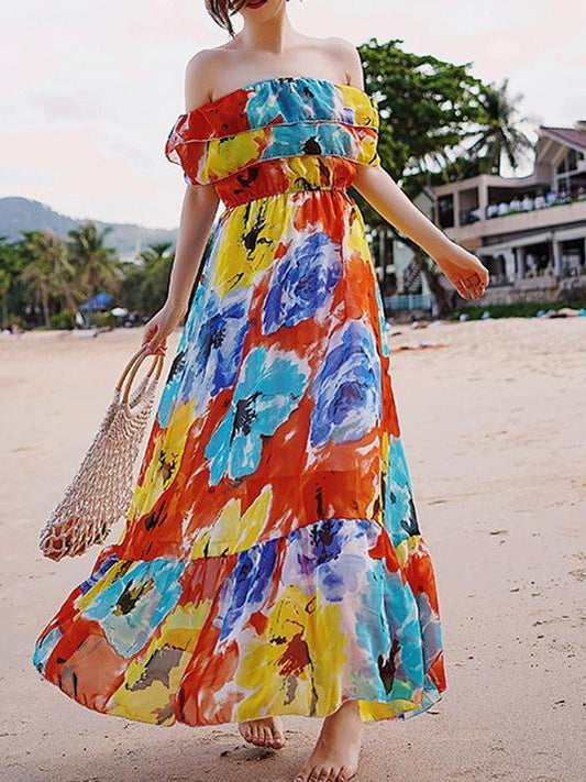 Vacation Summer Chiffon Slim Tube Top Bohemian Dress
