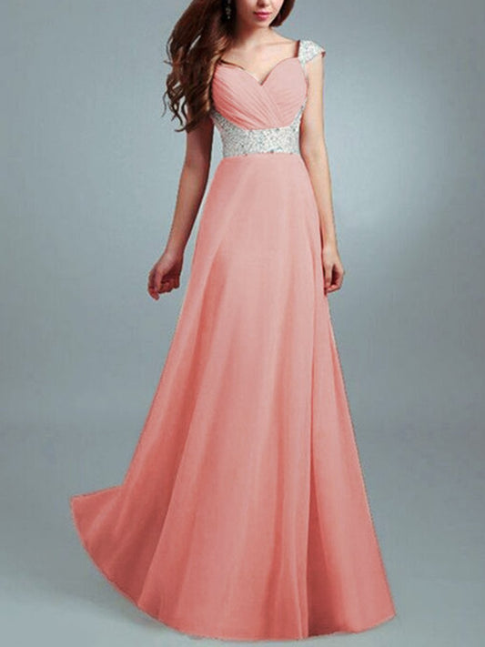 Sweet Heart Sequin Pleated Bodice Chiffon Evening Dress