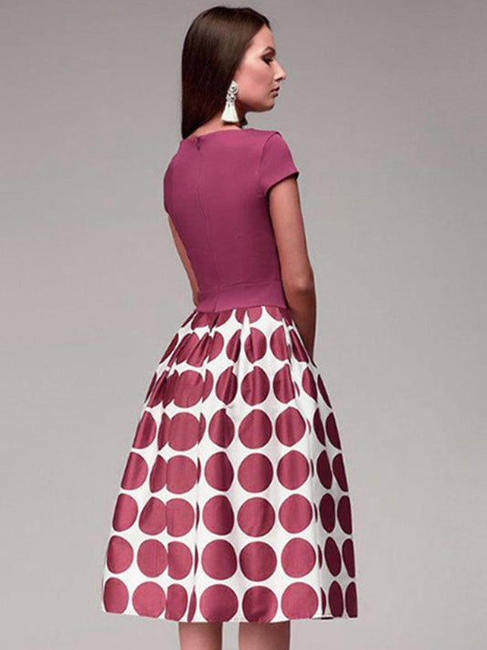 Summer Polka Dot Short Sleeve Evening Midi Dress
