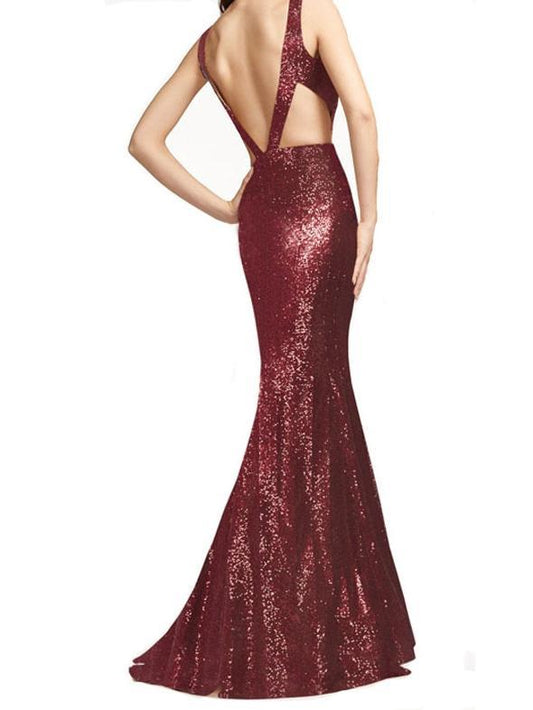 V-Neck Sleeveless Sequin Evening Gown