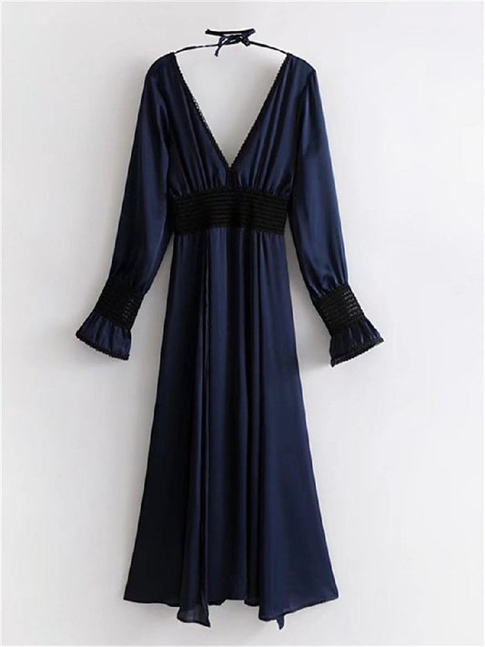 V-neck perspective lace trumpet sleeve dress