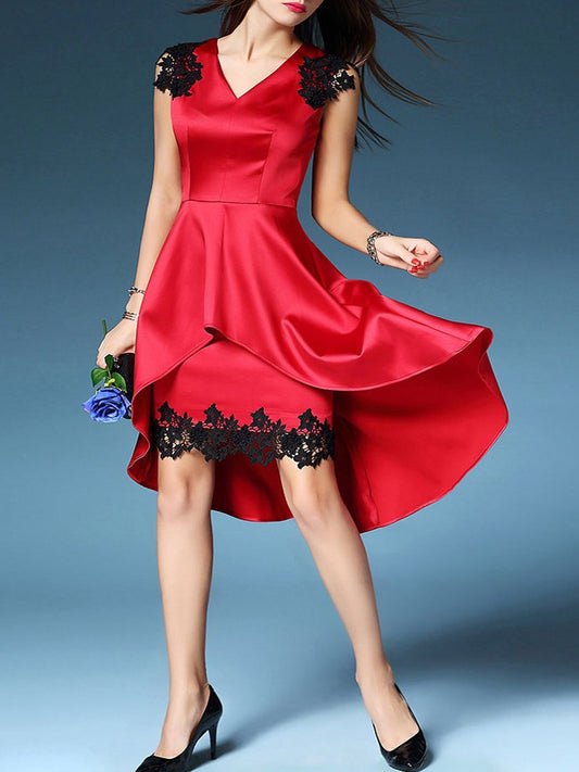 V-Neck Decorative Lace Plain Polyester Evening Dresses