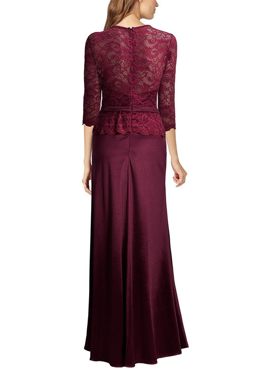 Three Solid Colors Lace Chiffon Maxi Dress Evening Party Dress