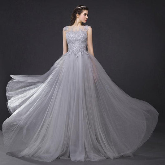 Three Colors Long Lace Evening Dress Huge Hem Banquet