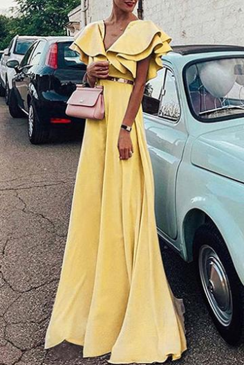 Solid Color V Neck Elegant Evening Party Maxi Dress