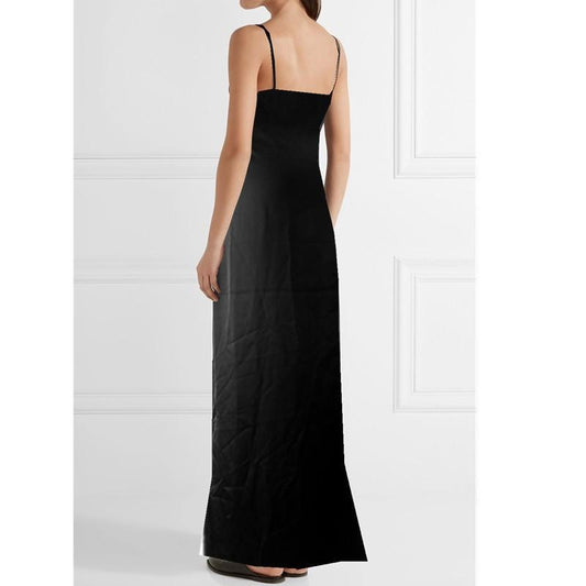 Summer V-Neck Sling Floor Long Section Bottoming Side Split Solid Color Maxi Dress