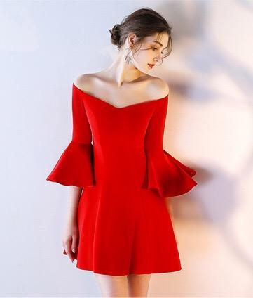 Solid Color Short Evening Dress Off Shoulder Banquet Bridesmaid Dress Elegant Slim Dress