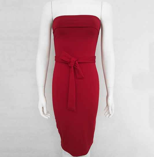 Solid Color Sexy Embroidered Bow Tie Bandage Bodycon Strapless Dress