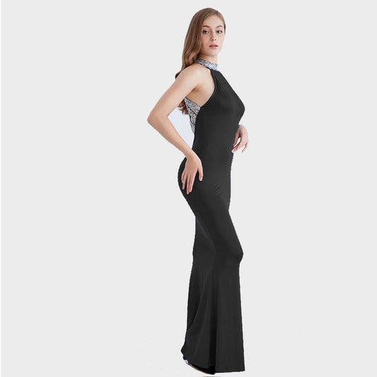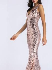 Fashion Sequins Sexy Backless Hanging Neck Fishtail Evening Dress