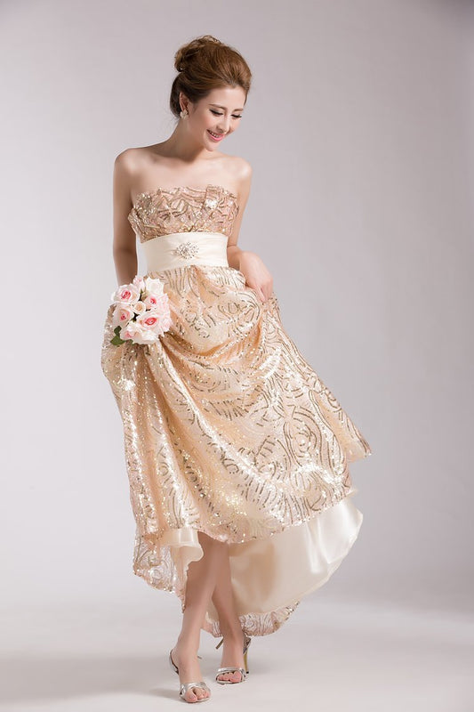 Golden Long Evening Dress Hosted Sequined Tube Lace Top Slim Maxi Dress