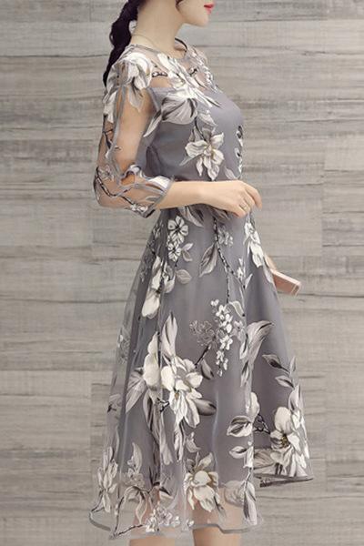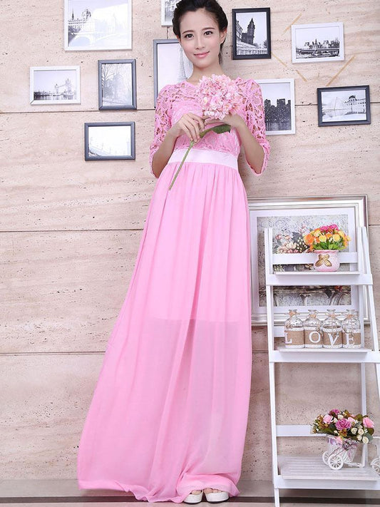 Fashion Lace Half Sleeve Round Neck Maxi Dress