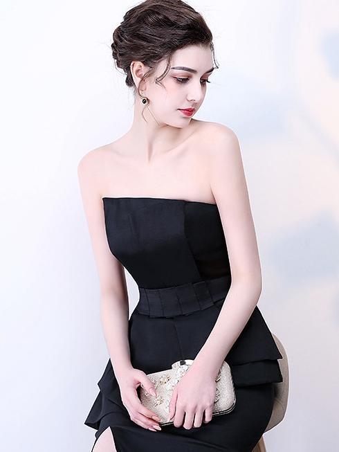 Ladies Temperament One-Shoulder Strapless Off-Shoulder Black Slim Dress