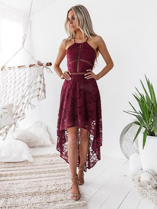 Lace-up Dress Autumn V-neck Lace Dress Banquet Swing Dress