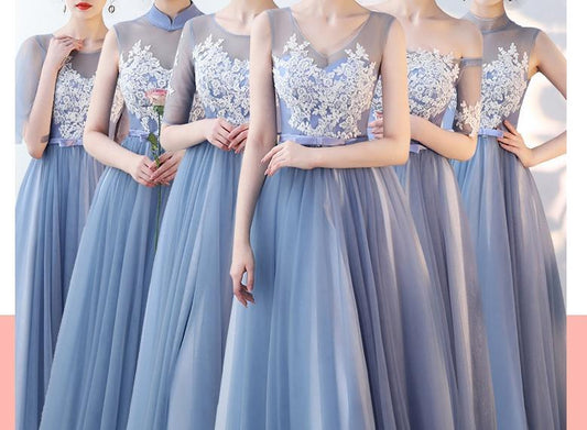 Gray Lace Graduation Bridesmaid Party Evening Dress