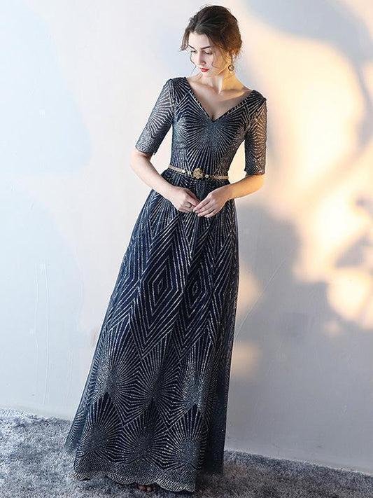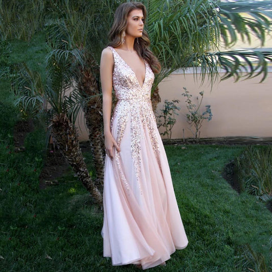 Bridesmaid V-Neck Sleeveless Sequins Evening Dress