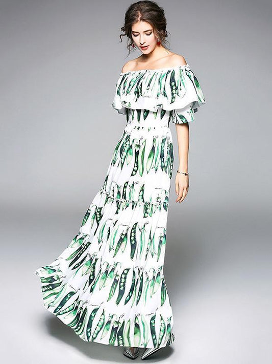 Elegant Split-joint Falbala Sleeves Maxi Dress