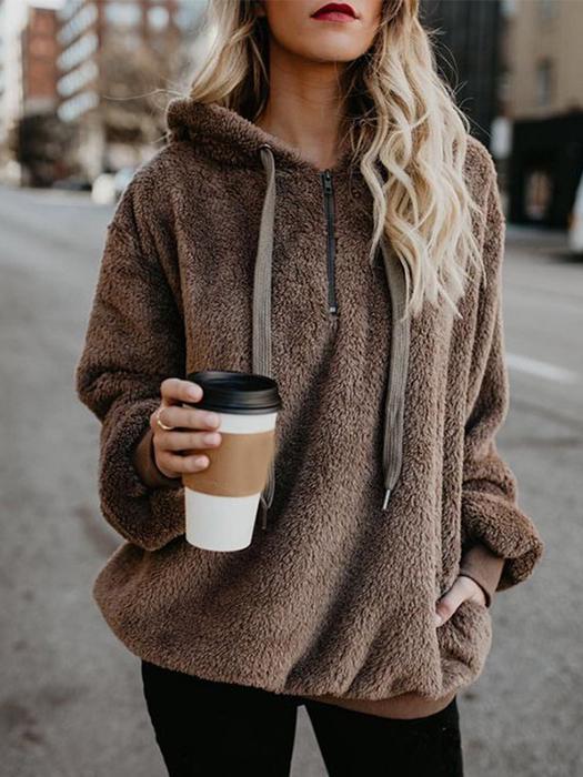 Winter Fleece Long-sleeved Solid Color Hoodie Tops