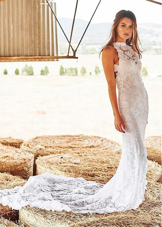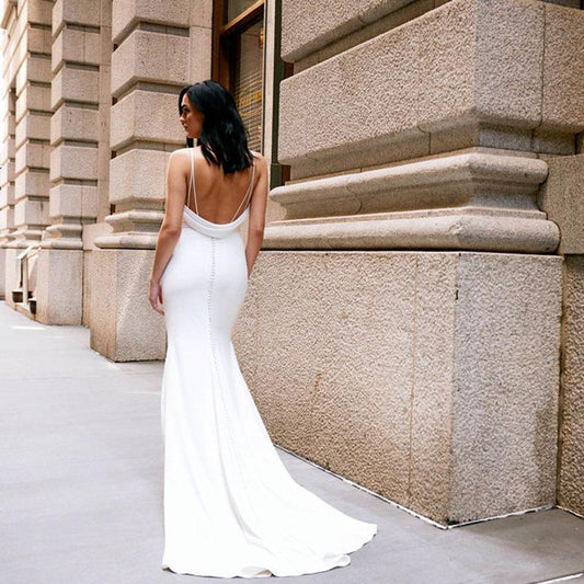 White Sleeveless Backless Mermaid Wedding Maxi Dress