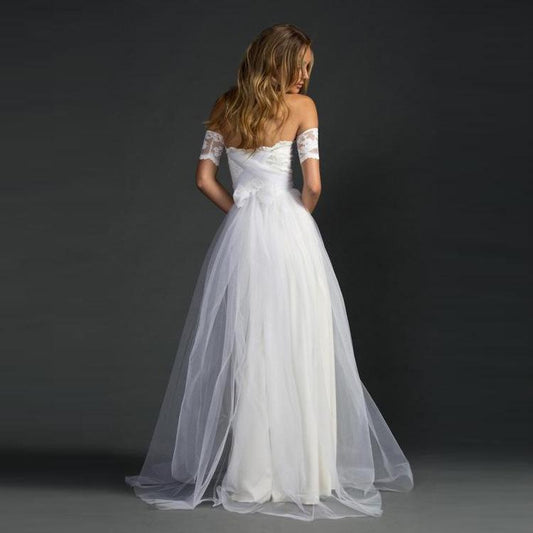 Women Off Shoulder Front Split Sexy Embroidery Lace Long Dress