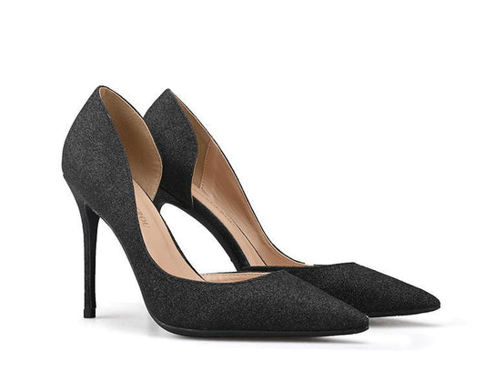 Women Sequins Pointed Stiletto Side Air Sexy Shallow Mouth High Heel Shoes
