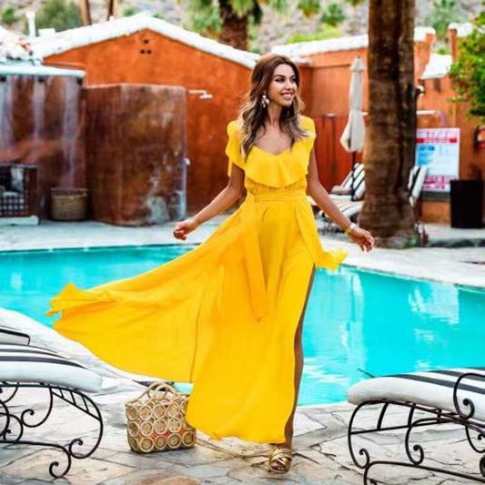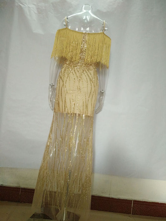 Yellow Suspender Evening Dress Sexy Bodycon Maxi Dress