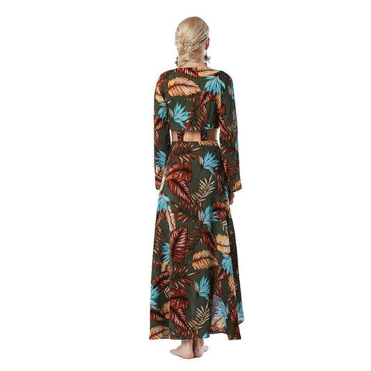 2018 Print Long Sleeve V Neck Bohemia Maxi Long Dress