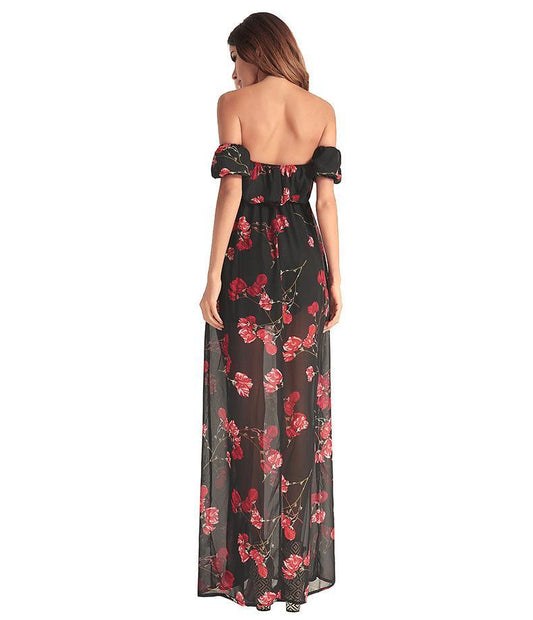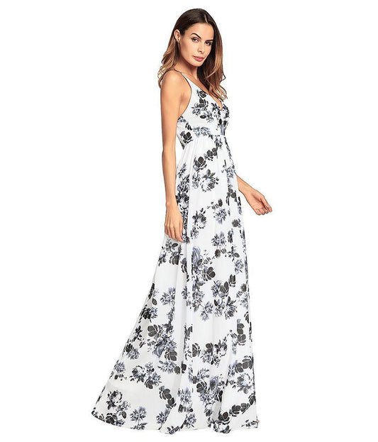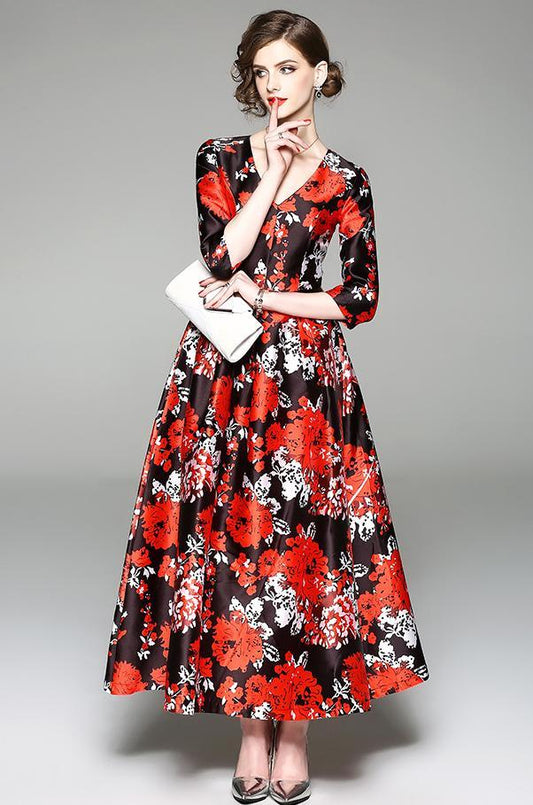 Elegant Floral Print Vintage Party Evening Maxi Dress