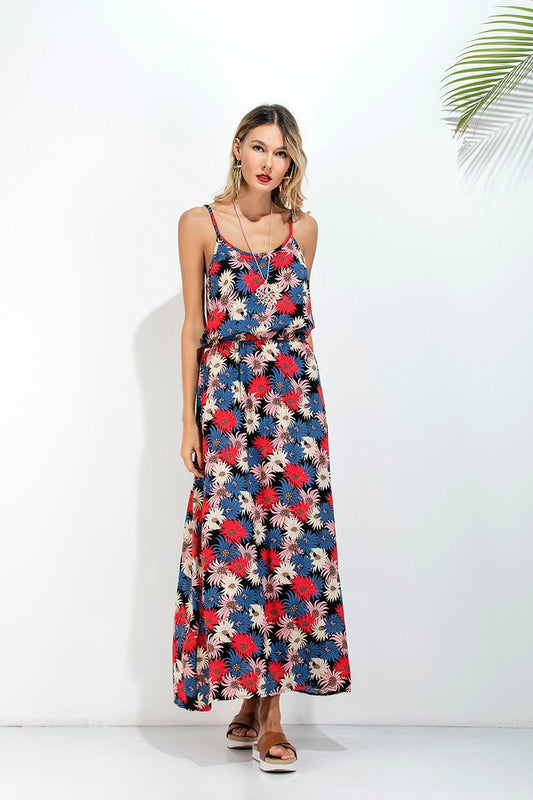 Spaghetti Stripe Printed Beach Bohemia Maxi Dress