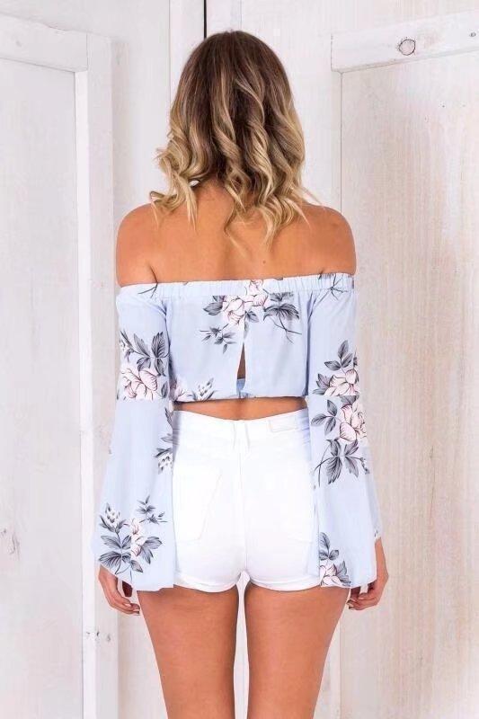 Off Shoulder Print Long Sleeve Casual Tops Shirts Blouse
