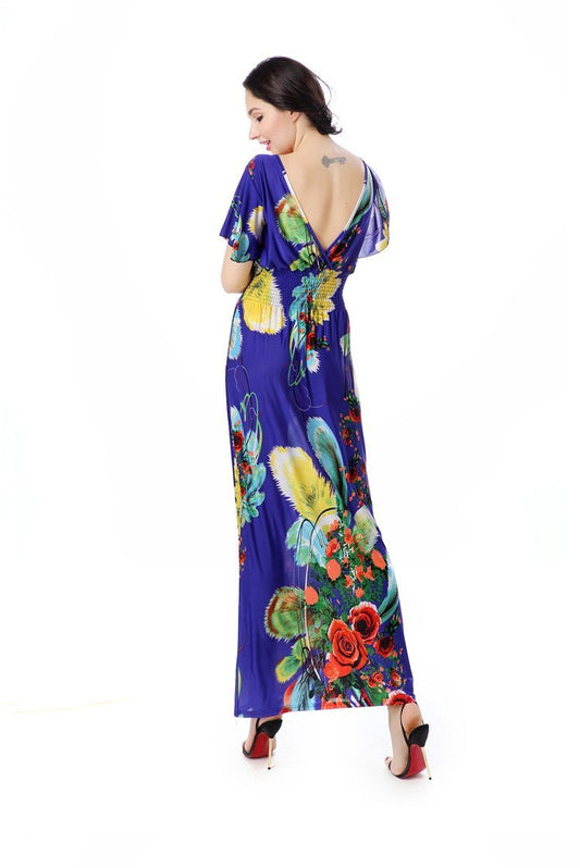 2018 New Printed V Neck Half Sleeve Maxi Dress