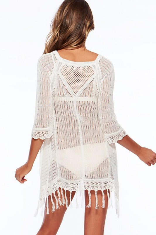 Round Neck Knit Tassel Swimwear Beach Tops Bikini Cover Up