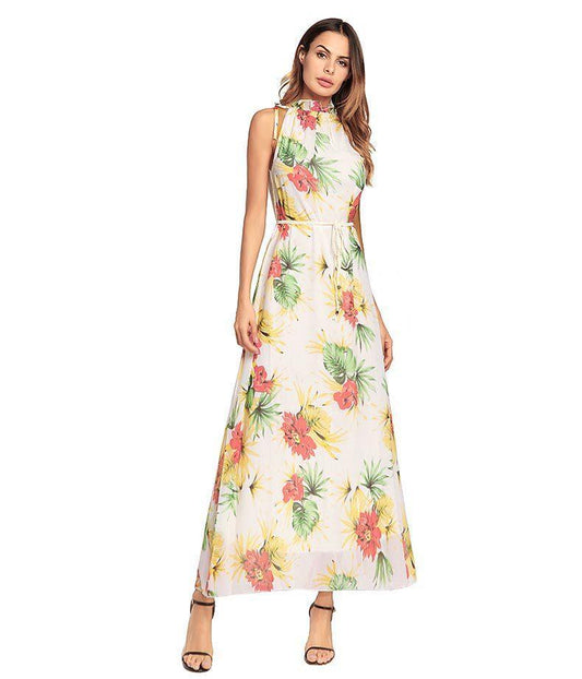 2018 Summer Sleeveless Floral Print Beach Maxi Dress
